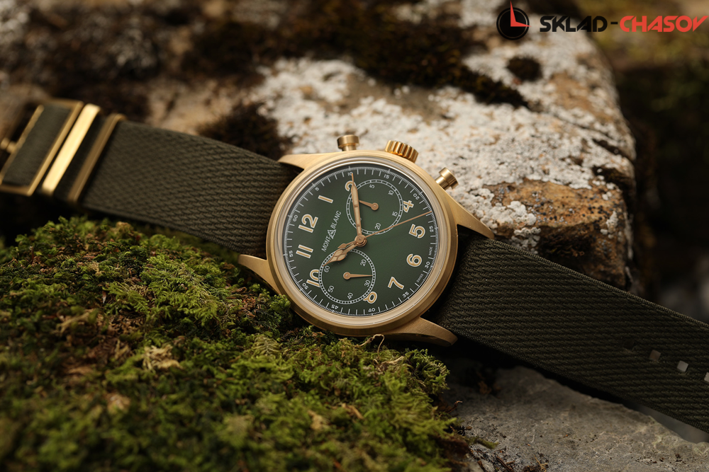 Элегантная мужская механическая модель с автоподзаводом. Лимитированная серия из 1858 экземпляров. Задняя крышка украшена выгравированным горным массивом Монблан.