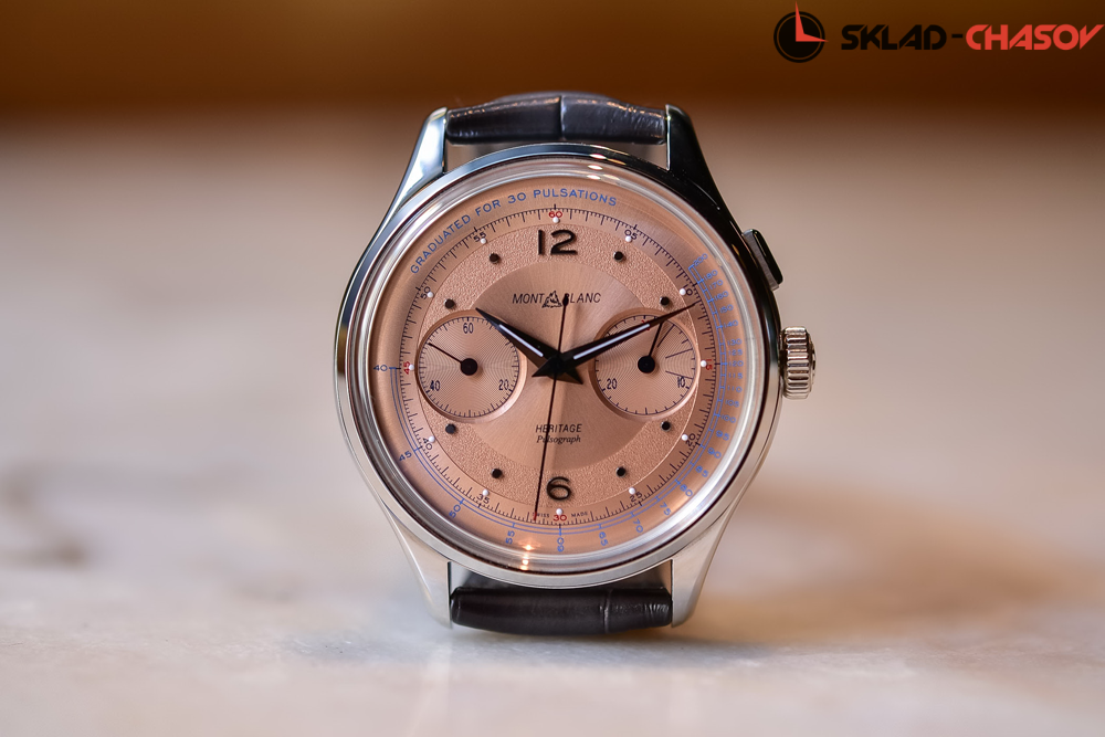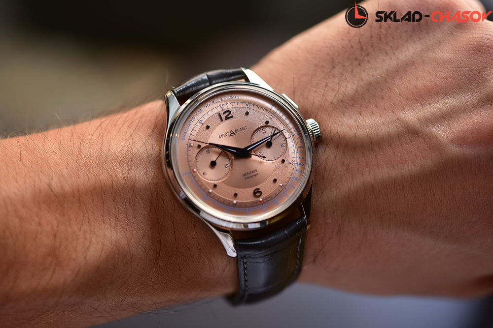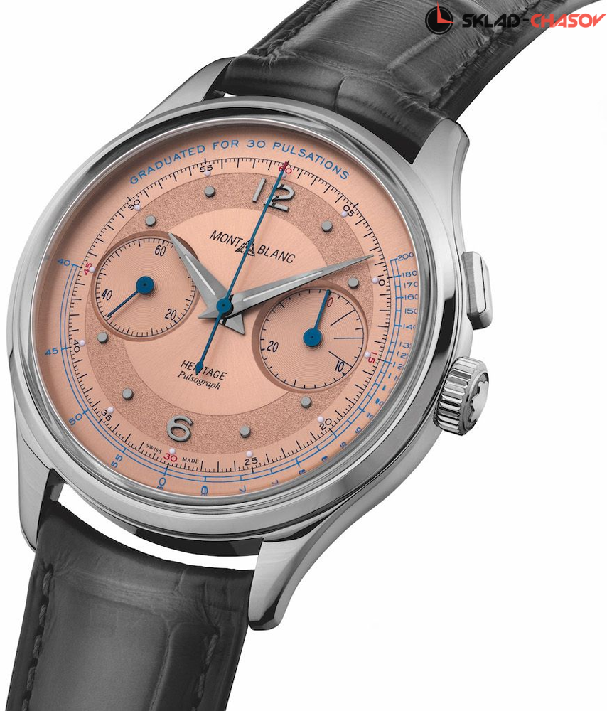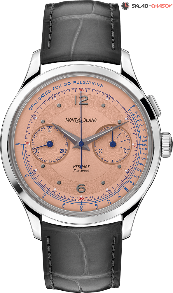 Элегантная мужская мануфактурная модель с автоподзаводом. Лимитированная серия из 100 экземпляров. На элегантном циферблате расположена шкала для измерения пульса.