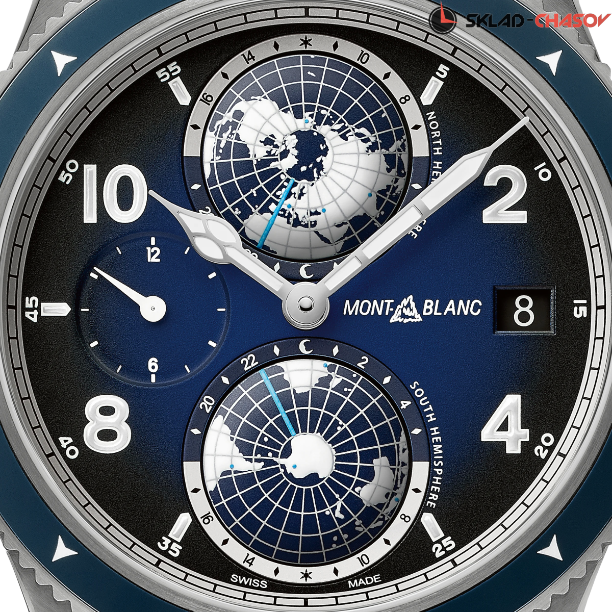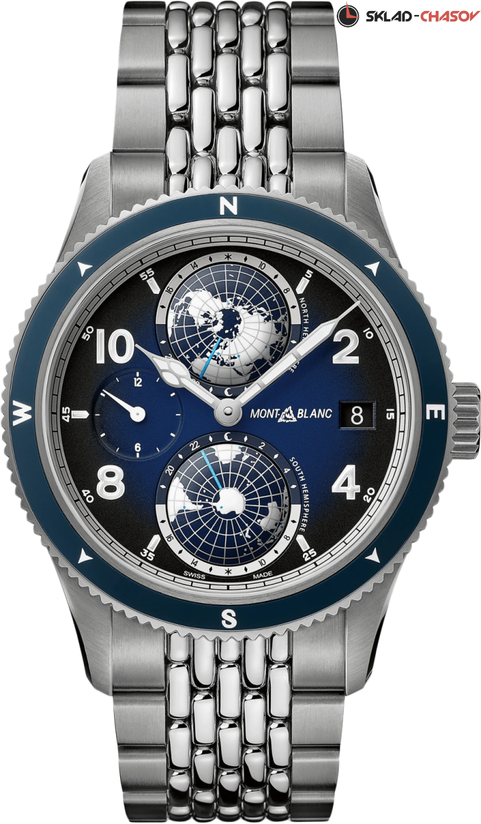Элегантная мужская механическая модель с сложной функцией индикации мирового времени и уникальной гравировкой на задней крышке. Модель Montblanc 1858 Geosphere посвящена альпинистам, желающим покорить семь вершин мира. Часы дополнены стальным браслетом.