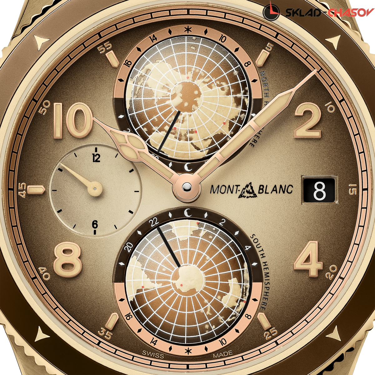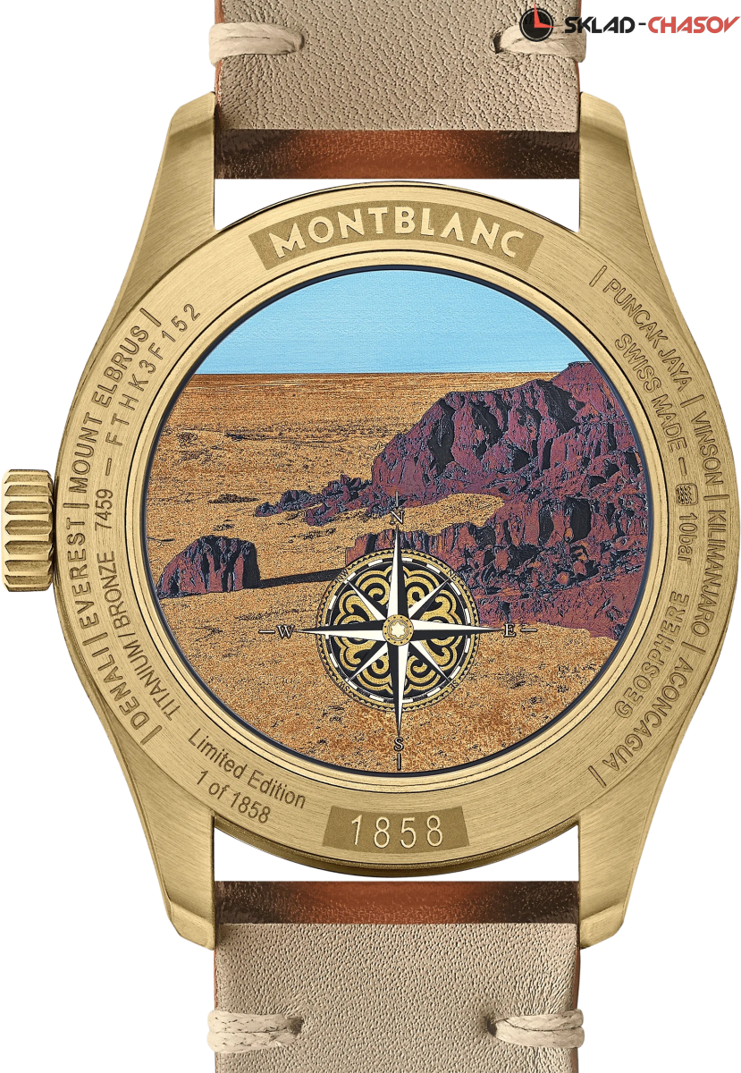 Элегантная мужская механическая модель с сложной функцией индикации мирового времени и уникальной гравировкой на задней крышке. Модель Montblanc 1858 Geosphere посвящена альпинистам, желающим покорить семь вершин мира. Бронзовый корпус дополнен контрастными деталями бежевого и коричневого цветов, ассоциирующихся с пустыней. Лимитированная серия из 1858 экземпляров.