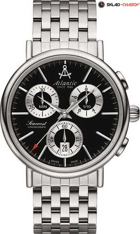 Наручные часы-хронограф Atlantic 50446.41.61 созданы для уверенных в себе мужчин. В них установлен кварцевый механизм ETA 251.272. Браслет и корпус модели стальные, сапфировое стекло выпуклое. На циферблате наручных часов Атлантик 50446.41.61 есть секундомер, отдельно вынесенная секундная стрелка и окошко даты. Гарантия 2 года.