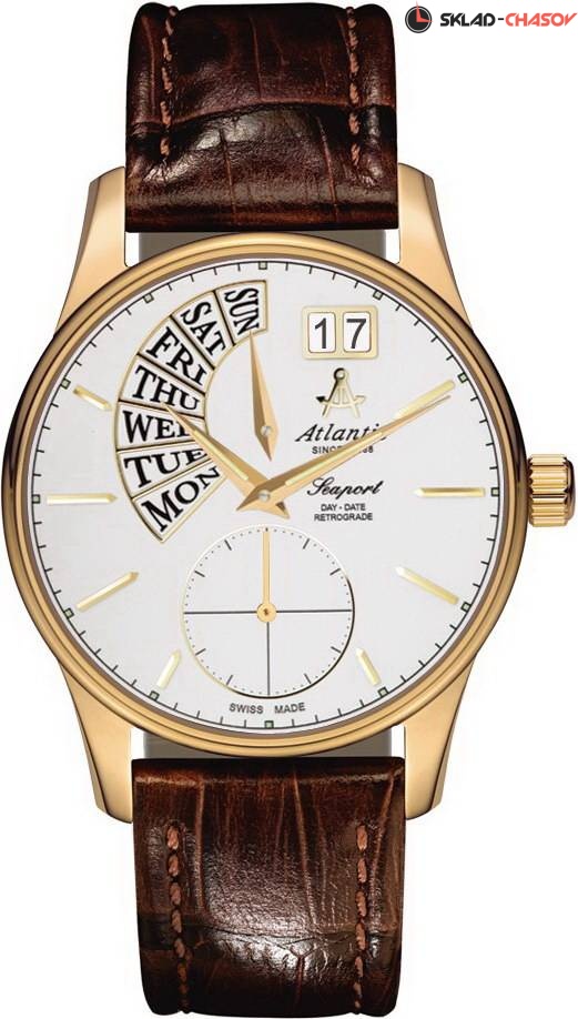 Секундная стрелка вынесена на отдельный циферблат.Ретроградный указатель дня недели. Большая дата.Механизм Ronda 7004.P. Гарантия 2 года.