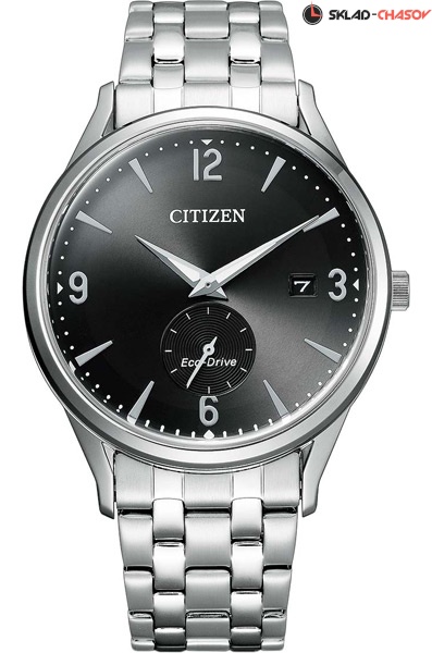 Мужские кварцевые наручные часы на солнечной батарее Citizen BV1111-75E коллекции Eco-Drive. Калибр механизма — B690. Аккумулятор данной модели заряжается от любого источника света. Срок работы аккумулятора с полным зарядом — до 270 дней. Примерный срок службы аккумулятора — 10 лет. Присутствует функция информирования о недостаточном заряде и предотвращения перезарядки. На данной модели отображается дата. Секундная стрелка вынесена на отдельный циферблат. Установлено минеральное стекло. Стрелки покрыты люминесцентным напылением (светятся в темноте). Стальной браслет. Водонепроницаемость WR50 (5 атм).