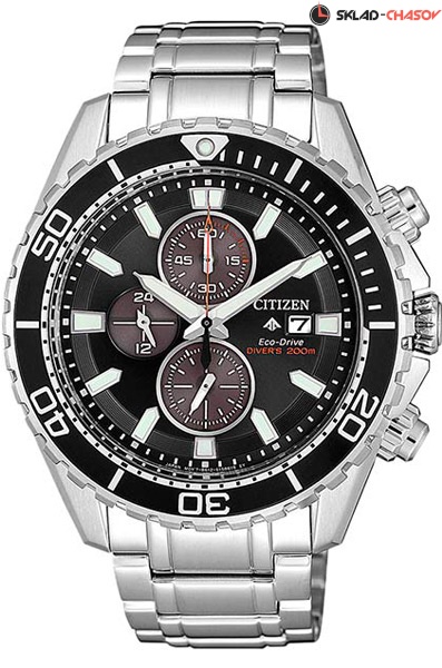 Мужские кварцевые часы с хронографом (секундомером) Citizen CA0711-80H коллекции Eco-Drive Chrono. Калибр механизма — B612. Данная модель обладает высокой степенью водонепроницаемости WR200 (20 атм) и подходит для глубокого погружения под воду. Аккумулятор данной модели заряжается от любого источника света. Срок работы аккумулятора с полным зарядом — 210 дней. Примерный срок службы аккумулятора — 10 лет. Присутствует функция информирования о недостаточном заряде. На данной модели отображается дата и время суток (24-х часовая шкала). Секундомер может отсчитывать до 59 минут 59 сек. с точностью 1/5 секунды. Стрелки и метки покрыты люминесцентным напылением (светятся в темноте). Завинчивающаяся заводная головка и задняя крышка для более уверенной водонепроницаемости часов. Вращающийся безель. На корпус частично нанесено стойокое PVD покрытие.
