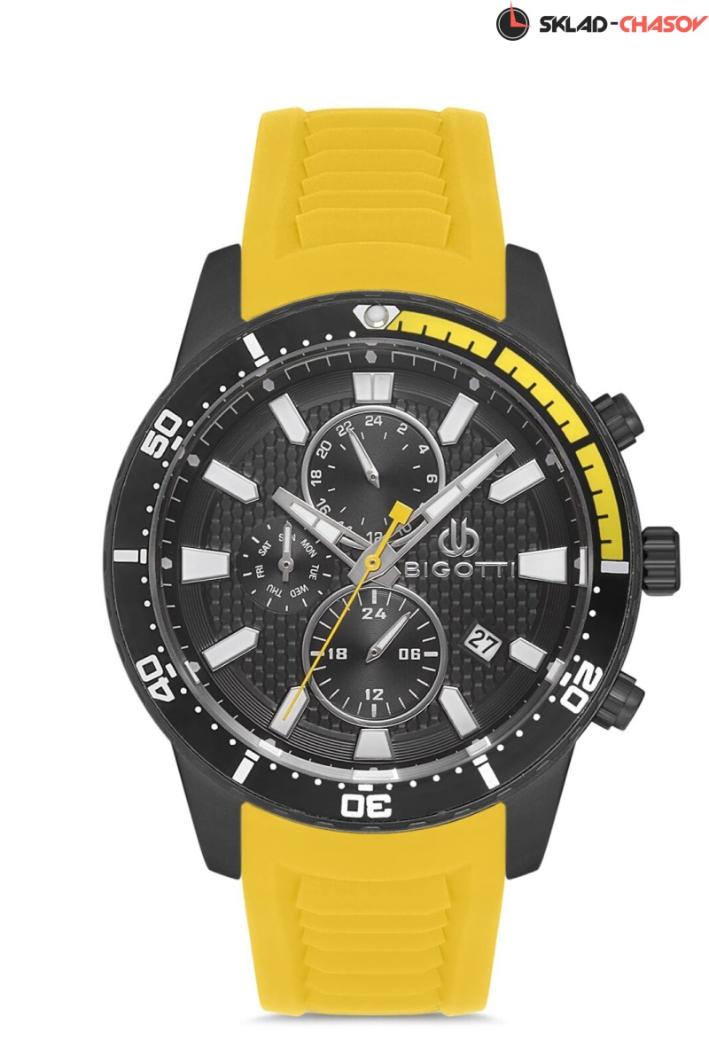 Стильные мужские часы-хронограф из коллекции Milano. Корпус выполнен из латуни с IP-покрытием. Штрихи, часовая и минутная стрелки с люминесцентным покрытием. Ремешок из приятного к руке силикона с классической застежкой. Дополнительные функции: дата, день недели, 24-часовой формат времени, 2 часовых пояса. Размер корпуса