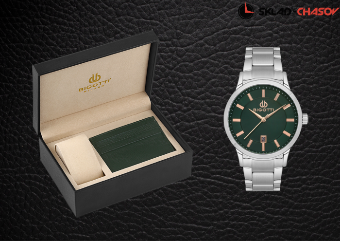 Отличный выбор для подарка. Стильные мужские часы из коллекции Quitidiano в комплекте с картхолдером из натуральной кожи в подарочной коробке. Корпус часов выполнен из латуни с IP-покрытием. Рифленая заводная головка. Браслет из нержавеющей стали с застежкой-бабочкой. Дополнительные функции: дата.