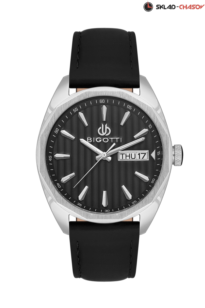 Стильные мужские часы из коллекции Raffinato. Корпус выполнен из латуни с IP-покрытием. Штрихи, часовая и минутная стрелки с люминесцентным покрытием. Рифленая заводная головка. Ремешок из натуральной кожи с классической застежкой. Дополнительные функции: дата, день недели.
