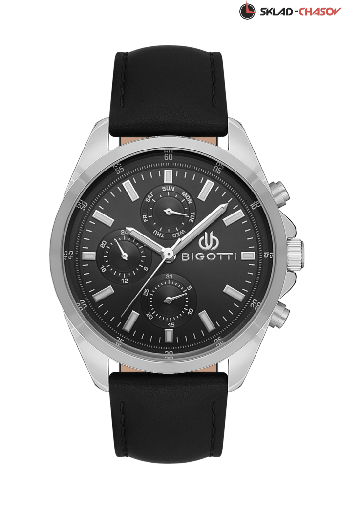 Стильные мужские часы с мультифункцией из коллекции Quotidiano. Корпус выполнен из латуни с IP-покрытием. Циферблат выполнен по технологии Sunray (солнечный луч). Штрихи, часовая и минутная стрелки с люминесцентным покрытием. Ремешок из натуральной кожи с классической застежкой. Дополнительные функции: дата, день недели, 24-часовой формат времени.