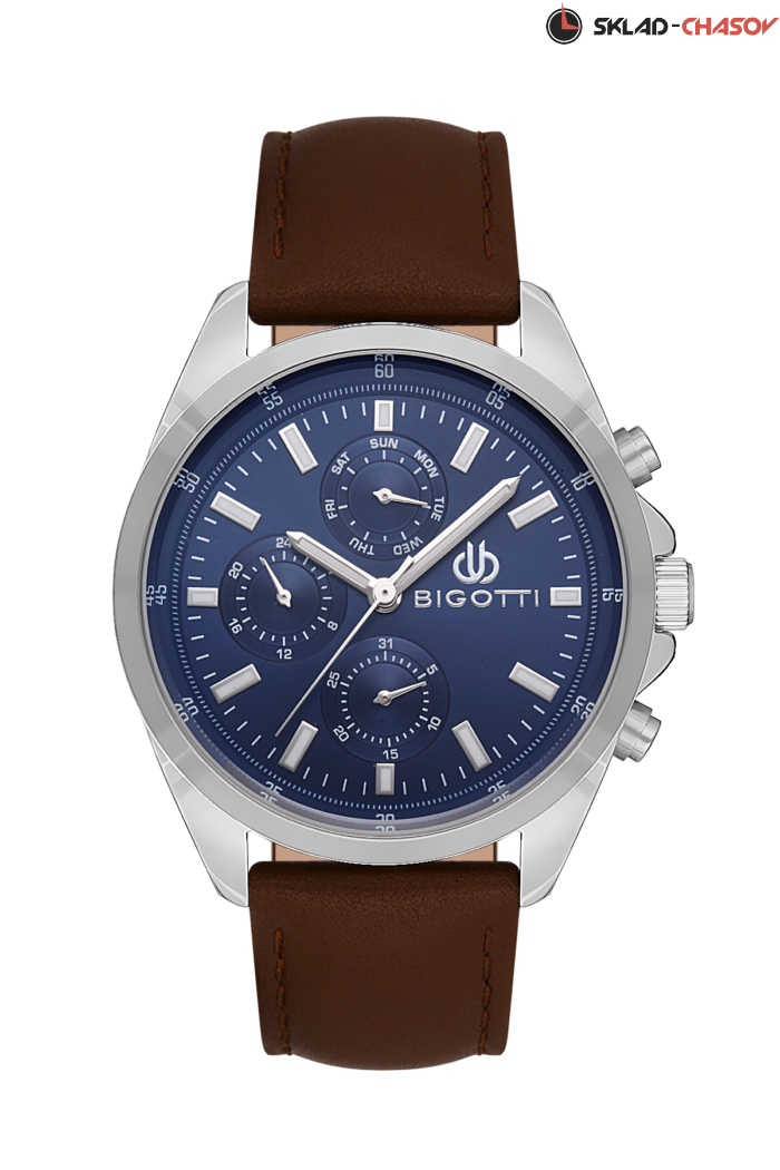 Стильные мужские часы с мультифункцией из коллекции Quotidiano. Корпус выполнен из латуни с IP-покрытием. Циферблат выполнен по технологии Sunray (солнечный луч). Штрихи, часовая и минутная стрелки с люминесцентным покрытием. Ремешок из натуральной кожи с классической застежкой. Дополнительные функции: дата, день недели, 24-часовой формат времени.