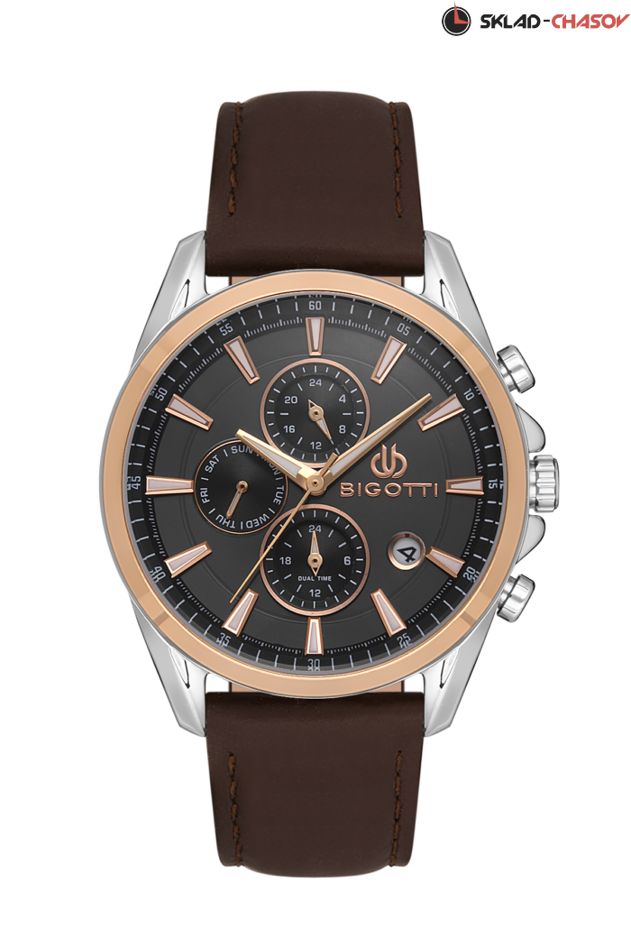 Стильные мужские часы с мультифункцией из коллекции Raffinato. Корпус выполнен из латуни с IP-покрытием. Штрихи, часовая и минутная стрелки с люминесцентным покрытием. Ремешок из натуральной кожи с классической застежкой. Дополнительные функции: дата, день недели, 24-часовой формат времени, 2 часовых пояса.