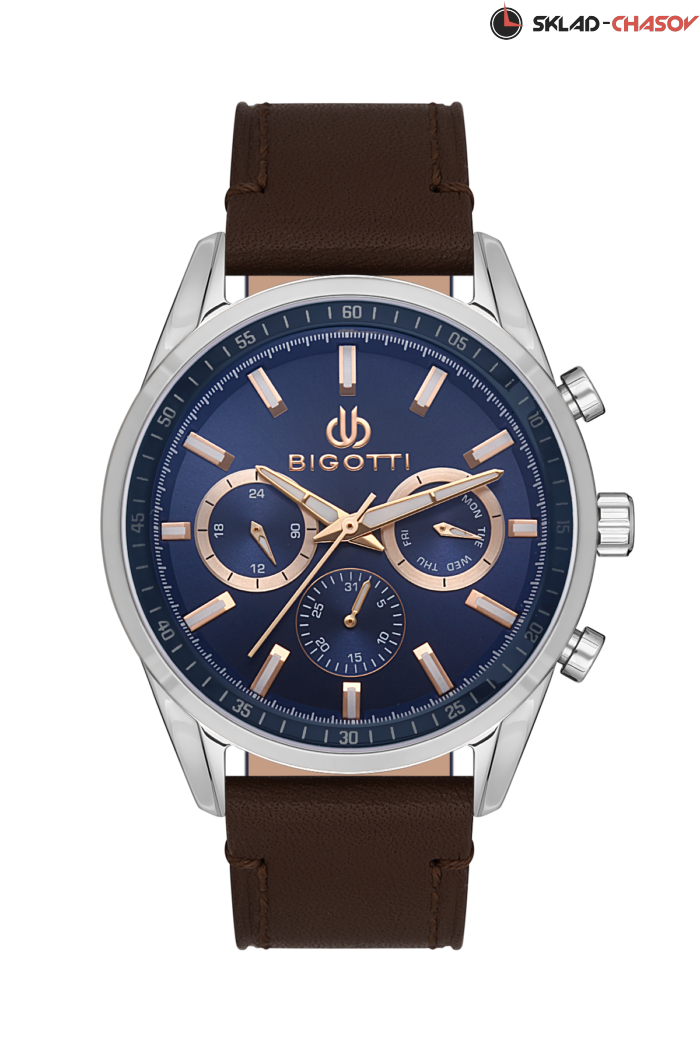 Стильные мужские часы с мультифункцией из коллекции Quotidiano. Корпус выполнен из латуни с IP-покрытием. Циферблат выполнен по технологии Sunray (солнечный луч). Штрихи, часовая и минутная стрелки с люминесцентным покрытием. Ремешок из натуральной кожи с классической застежкой. Дополнительные функции: дата, день недели, 24-часовой формат времени.