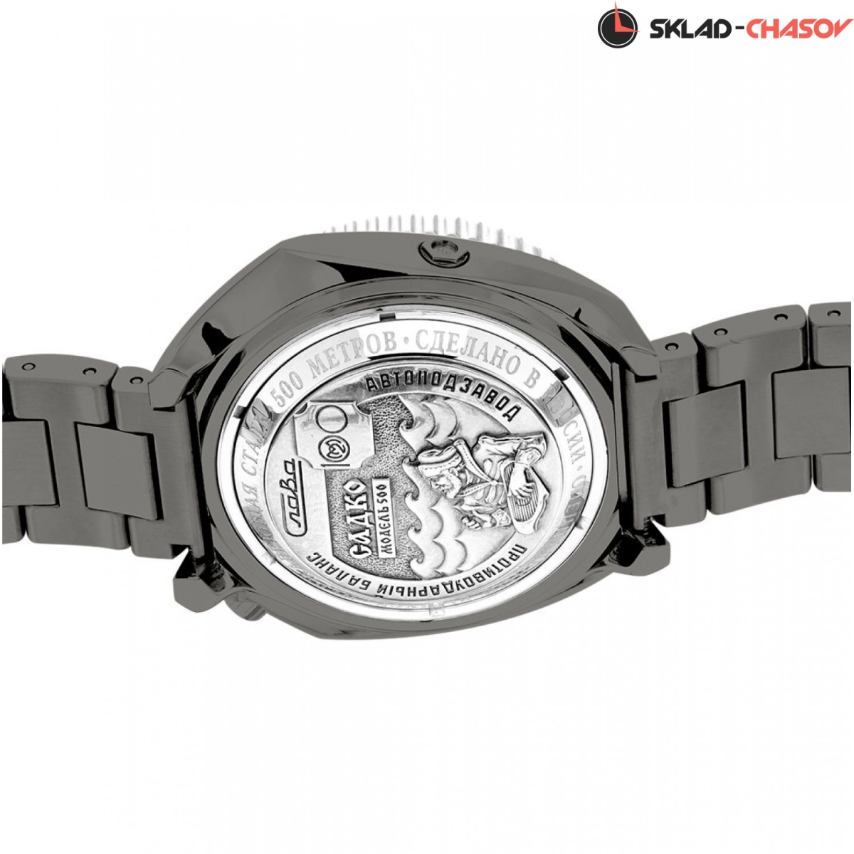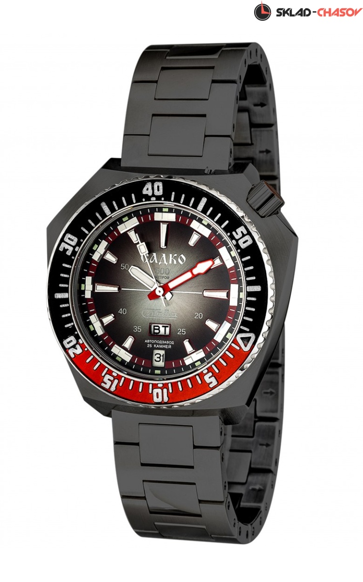 Ремейк cамых редких часов «Слава» Стальной корпус с минеральным стеклом имеет водонепроницаемость 500 метров или 50АТМ, что на 30 АТМ больше, чем у оригинала. На данный момент советских часов этого так называемого класса «Амфибия» осталось у коллекционеров совсем мало, и за хорошо сохранившиеся экземпляры просят, как за неплохие современные автомобили. Мы решили восполнить этот пробел и создали ремейк таких часов, который был презентован на встрече коллекционеров часов «Слава» в Москве. Новый "Садко"Корпус новейших «Садко» имеет габариты 45 мм при высоте 16 мм. При впечатляющей герметичности, он оснащен автоматическим клапаном декомпрессии, который расположен в положении «8.30». Заводная головка наполовину защищена мощными стальными выступами м находится у отметки «1.30». Автоматический калибр Слава 2427 работает с частотой 18 000 пк/ч и имеет запас хода 40 ч. Эксклюзивный стальной браслет с двойной застежкой-бабочка оснащен устройством быстрой коррекции длины. Упаковка Стильная подарочная упаковка для часов Слава - Садко позволит сразу подарить часы без дополнительной упаковки. Упаковка выполнена из дерева и обтянута экокожей отечественного производства.
