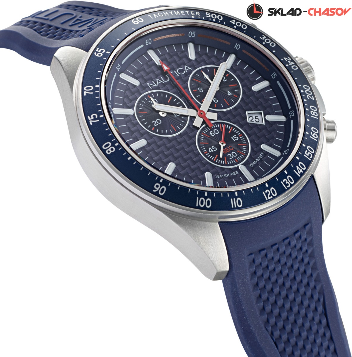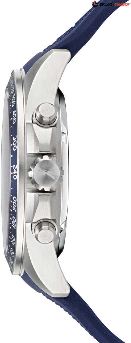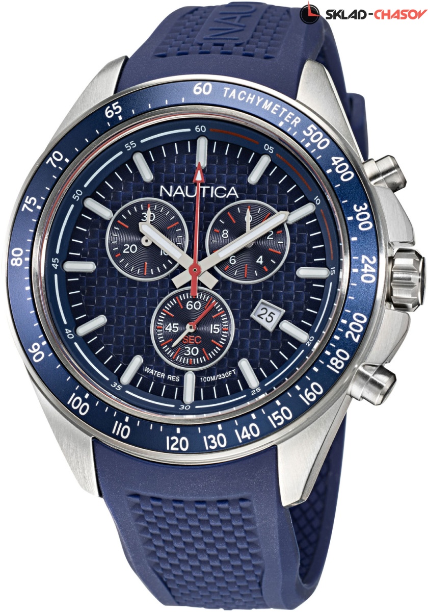 Мужские часы-хронограф в крепком корпусе из нержавеющей стали станут идеальным спутником на тренировках. Ocean Beach. Часы-хронограф с секундомером и тахиметром. Циферблат и силиконовый ремешок украшены декоративным узором. Метки в виде штрихов. Окошко даты находится в положении 4 часа. Рифленая заводная головка с защитой и завинчивающаяся задняя крышка украшены выгравированными фирменными логотипами Nautica в виде стилизованного паруса.