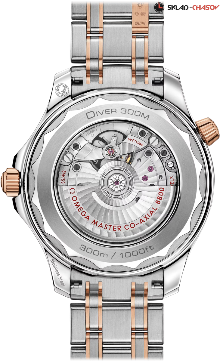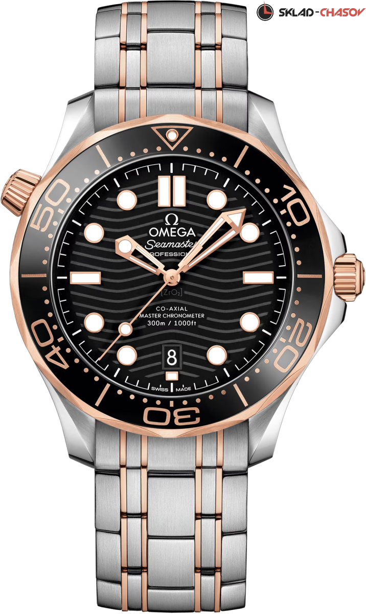 Мужской дайвер диаметром 42 мм в корпусе из нержавеющей стали и 18-каратного золота Sedna,с коническим гелиевым клапаном, завинчивающейся заводной коронкой, однонаправленно вращающийся безель. Покрытие Superluminova на стрелках и разметке. Апертура даты в положении 6 часов. Керамический циферблат с волнистым узором, безель так же выполнен из керамики с покрытием CERAGOLD. Хронометр METAS. Прозрачная задняя крышка с сапфировым стеклом.