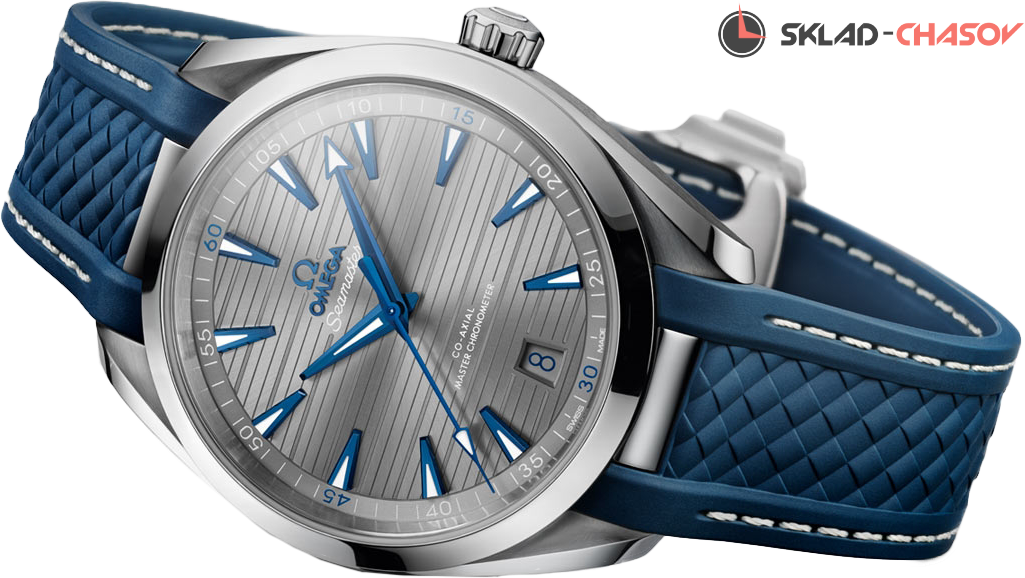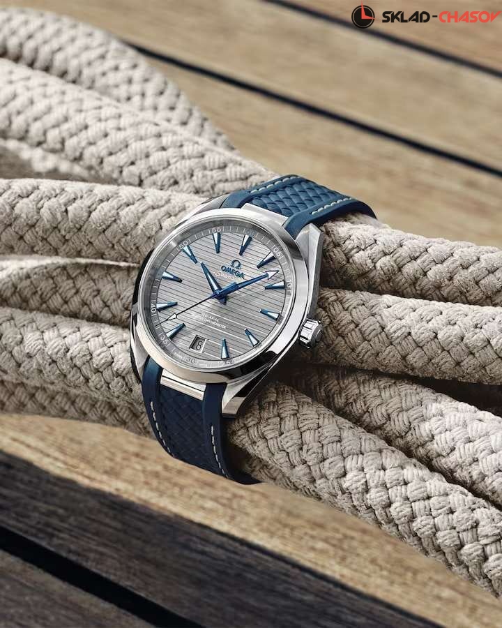 Omega Seamaster Aqua Terra выполнены в симметричном корпусе из нержавеющей стали с завинчивающейся задней крышкой, украшенной волновым узором. Циферблат дополнен окошком даты на 6 часах и оформлен в виде горизонтального рисунка, вдохновлённого текстурой тикового дерева палуб яхт. Стрелки и метки оснащены люминесцентным покрытием Super-LumiNova для лучшей читаемости в темноте. Калибр Omega 8900 сертифицирован как Master Chronometer — гарантия высочайшей точности и устойчивости к магнитным полям. Запас хода составляет 60 часов. Защиту циферблата обеспечивает сапфировое стекло с антибликовым покрытием. Водозащита позволяет использовать часы в воде без риска повреждения. Часы установлены на структурированный резиновый ремешок с дополнительным стальным звеном для интеграции с корпусом. Это сочетание премиального качества, технологичности и классического дизайна.