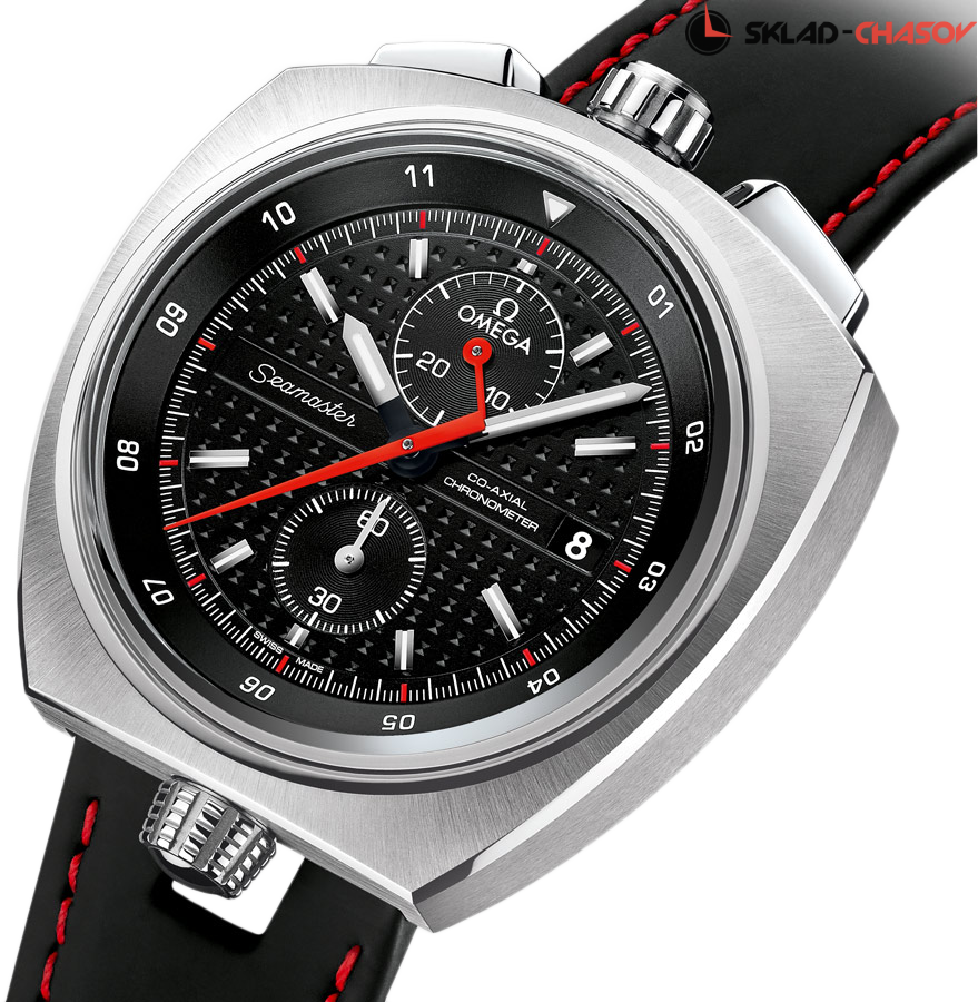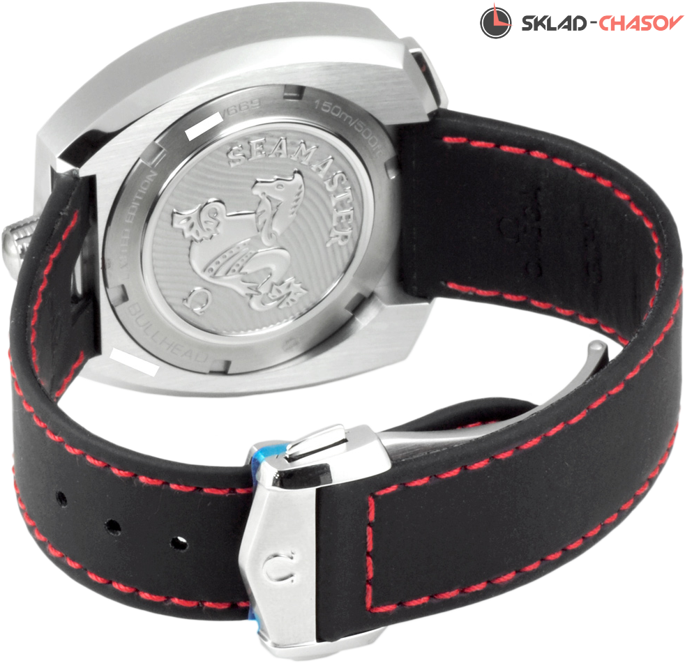 Хронометр C.O.S.C., хронограф, индикация даты, завинчивающаяся заводная головка, вращающийся в обоих направлениях внутрений безель, вынесенная секундная стрелка в положении 6 часов, 24-х часовая шкала. Чтобы удовлетворить давнюю мечту почитателей Seamaster Bullhead, OMEGA перевыпустила ограниченную серию этого легендарного хронографа. Limited Edition 669 экз.