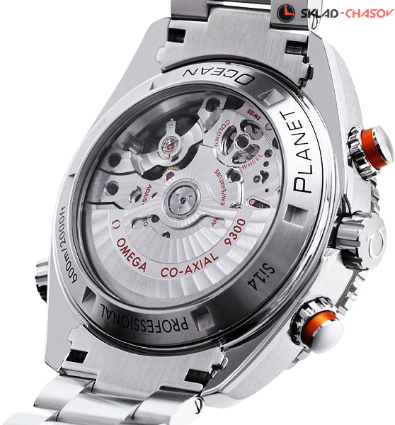 Хронометр C.O.S.C., хронограф, индикация даты, гилиевый клапан, малая секундная трелка в положении 9 часов, завинчивающаяся заводная головка, прозрачная задняя крышка, вращающийся в одном направлении безель.