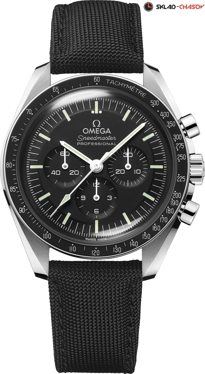 Speedmaster Moonwatch — легендарная модель, вошедшая в историю как первые часы на Луне. Шесть космических миссий сделали их символом инженерного мастерства OMEGA. Эти хронометры представлены в 42-миллиметровом корпусе из нержавеющей стали с нейлоновым ремешком, дополнены хезалитовым стеклом на циферблате и фирменным медальоном с морским коньком на задней крышке. Их асимметричный дизайн повторяет черты легендарного Speedmaster 4-го поколения, с черным многоуровневым циферблатом и характерной точкой у отметки 90 на безеле из анодированного алюминия. В основе работы — высокоточный механизм OMEGA Co-Axial Master Chronometer 3861, управляющий хронографом с тремя счетчиками: малыми секундами, 30-минутным и 12-часовым индикаторами.
