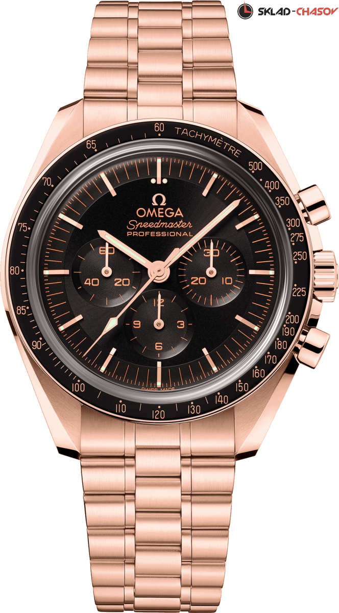 Модель из золота Sedna. Дизайн напоминает часы Speedmaster 4-го поколения, побывавшие на Луне. Прозрачная задняя крышка. Chronometer, утвержденного Швейцарским федеральным институтом метрологии (METAS), устойчивость к воздействию магнитных полей силой до 15 000 гаусс.