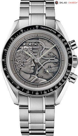 Хронограф, малая секундная стрелка, тахиметрическая шкала. Выпущенная ограниченной серией модель Speedmaster Moonwatch «Apollo XVII» посвящена 40-й годовщине первой высадки человека на Луну, состоявшейся в декабре 1972 года. На ее рельефном циферблате, выполненном из серебра 925 пробы, воспроизведена эмблема миссии «Аполлон-XVII». Limited Edition 1972 экз.