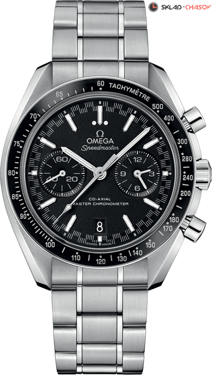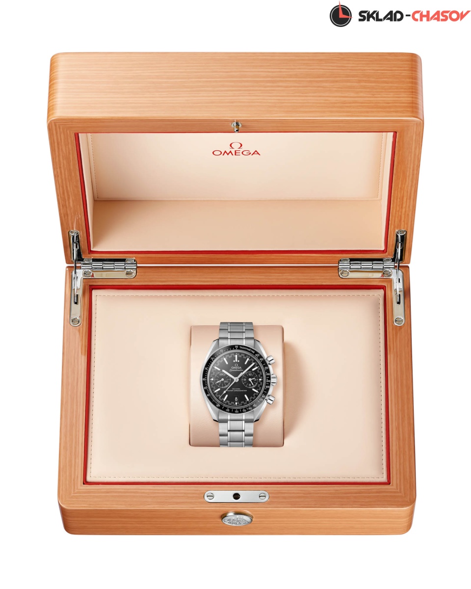 Speedmaster Racing Master Chronometer в 44,25-мм корпусе из нержавеющей стали с браслетом демонстрирует безупречное сочетание гоночной эстетики и часового мастерства. Черное керамическое кольцо с тахиметрической шкалой из инновационного Liquidmetal™ придает моделей неповторимый спортивный шарм. Черный циферблат с характерной "спидометрной" минутной шкалой украшен индексами из белого золота в форме стрел, покрытыми Super-LumiNova, создающими выразительный контраст. Два функциональных счетчика с чернеными кольцами и окошко даты на 6 часах подчеркивают сбалансированность дизайна. В сердце часов - высокоточный калибр OMEGA Co-Axial Master Chronometer 9900, прошедший строжайшие испытания METAS и подтвердивший статус эталона часового искусства.