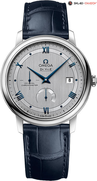 Хронометр C.O.S.C., индикации даты, малая секундная стрелка в положении 9 часов, индикация запаса хода в положении 6 часов, циферблат украшен сатинированием, часовые метки в виде полированных римских цифр и кабошонов.