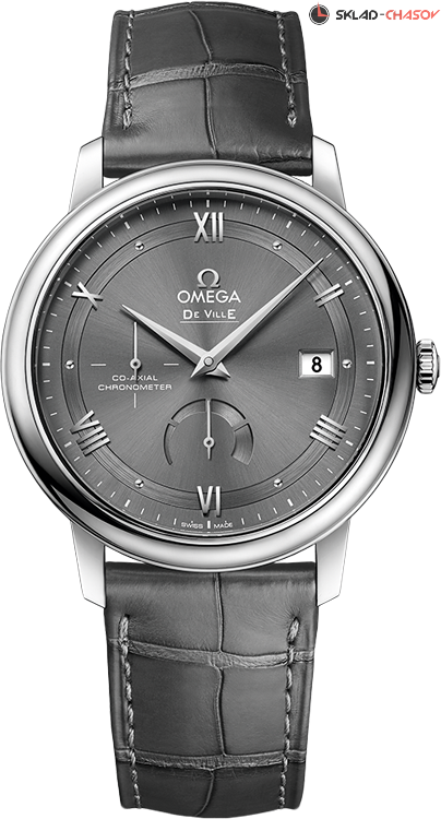 Хронометр C.O.S.C., индикации даты, малая секундная стрелка в положении 9 часов, индикация запаса хода в положении 6 часов, циферблат украшен сатинированием, часовые метки в виде полированных римских цифр и кабошонов.