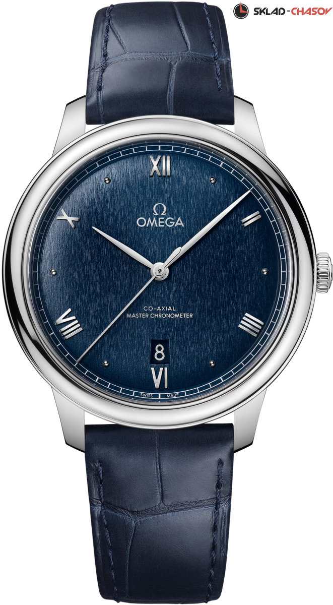 Коллекция OMEGA De Ville Prestige, не теряющая актуальности с 1994 года, предстает в третьем поколении. Часы остаются символом классического дизайна и изысканной элегантности. Модели, привлекающие внимание широкой гаммой узоров, отделок и цветов, идеально подойдут для людей с разным образом жизни и характером. Часы в корпусе диаметром 40 мм из нержавеющей стали имеют выпуклый циферблат с PVD-покрытием темно-синего цвета, украшенный рельефным произвольным вертикальным узором с радиальным сатинированием. На циферблате расположены стрелки с родиевым покрытием, а также чередующиеся римские цифры и индексы в форме кабошона. Изделие с лаконичным дизайном дополнено окошком даты в положении «6 часов» и минутной шкалой в стиле «железная дорога» на внешнем секторе. Часы с сертификатом Master Chronometer представлены с кожаным ремешком темно-синего цвета. Модель оснащена калибром OMEGA Master Co-Axial 8800, который виден сквозь устойчивое к царапинам сапфировое стекло задней крышки корпуса.