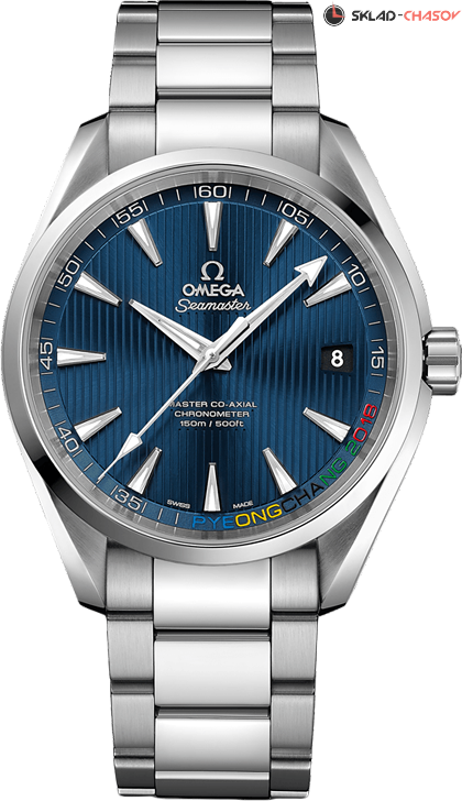 Компания Omega выпустали модель Aqua Terra 150M в честь начала 2-летней подготовки к зимним олимпийским играм в Южной Корее. Одной из отличительных особенностей этой модели является нанесенное название Олимпиады в Пхенчхане. На минутную шкалу синего циферблата, оформленного в стиле Teak Concept, нанесена надпись "PYEONGCHANG 2018", выполненная с использованием пяти цветов олимпийских колец. Надпись нанесена таким образом, что цифры "20" и "18" точно совпадают с соответствующими минутными метками. Прозрачная задняя крышка украшена официальным логотипом зимних Олимпийских игр 2018 в Пхенчхане. На боковой части корпуса выгравирован номер ограниченной серии. Limited Edition 2018 экз.