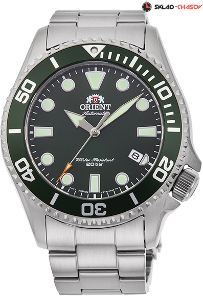 Мужские механические наручные часы с автоподзаводом и возможностью ручного завода Orient RA-AC0K02E коллекции Diver. Калибр механизма — F6722. Запас хода более 40-ка часов. Количество камней - 22. Функция стоп-секунда (остановка секундной стрелки для установки точного времени). Данная модель обладает высокой степенью водонепроницаемости WR200 (20 атм) и подходит для глубокого погружения под воду. На циферблате отображается текущая дата. Стрелки и метки покрыты люминесцентным напылением (светятся в темноте). Установлено сапфировое стекло устойчивое к царапинам. Завинчивающаяся заводная головка и задняя крышка для более уверенной водонепроницаемости часов. На корпус частично нанесено PVD покрытие. Вращающийся безель.
