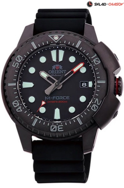 Мужские механические наручные часы с автоподзаводом и возможностью ручного завода Orient RA-AC0L03B коллекции M-Force. Японская сборка (Made In Japan). Калибр механизма — F6727. Запас хода более 40-ка часов. Количество камней - 22. Функция стоп-секунда (остановка секундной стрелки для установки точного времени). Данная модель обладает высокой степенью водонепроницаемости WR200 (20 атм) и подходит для глубокого погружения под воду. На циферблате отображается текущая дата. Стрелки и метки покрыты люминесцентным напылением (светятся в темноте). Установлено устойчивое к царапинам сапфировое стекло с антибликовым покрытием . Завинчивающаяся заводная головка и задняя крышка для более уверенной водонепроницаемости часов. На корпус нанесено PVD покрытие. Силиконовый ремешок. Заводная головка с защитой. Вращающийся безель.