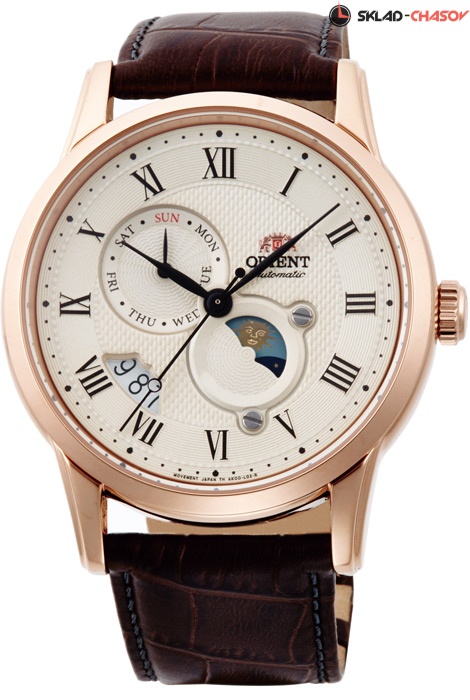 Мужские механические наручные часы с автоподзаводом и возможностью ручного завода Orient RA-AK0007S (RA-AK0007S10B) коллекции Sun & Moon Classic. Калибр механизма — F6B24. Запас хода более 40-ка часов. Количество камней - 22. Функция стоп-секунда (остановка секундной стрелки для установки точного времени). На данной модели отображается дата, день недели и время суток (день/ночь). Установлено сапфировое стекло устойчивое к царапинам. Прозрачная завинчивающаяся задняя крышка. Кожаный ремешок. На корпус нанесено стойкое PVD покрытие. Водонепроницаемость WR50 (5 атм).