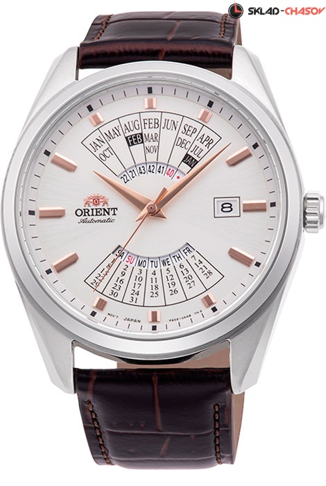 Мужские механические наручные часы с автоподзаводом Orient RA-BA0005S (RA-BA0005S10B) коллекции Multi-Year Calendar. Калибр механизма — F6D22. Запас хода более 40-ка часов. Количество камней - 21. В данной модели присутствует функция месячного календаря, с помощью нее, синхронизируя индикатор дня недели с требуемой датой, на циферблате отображается календарь целого месяца. Завинчивающаяся прозрачная задняя крышка. Кожаный ремешок. Водонепроницаемость WR50 (5 атм).