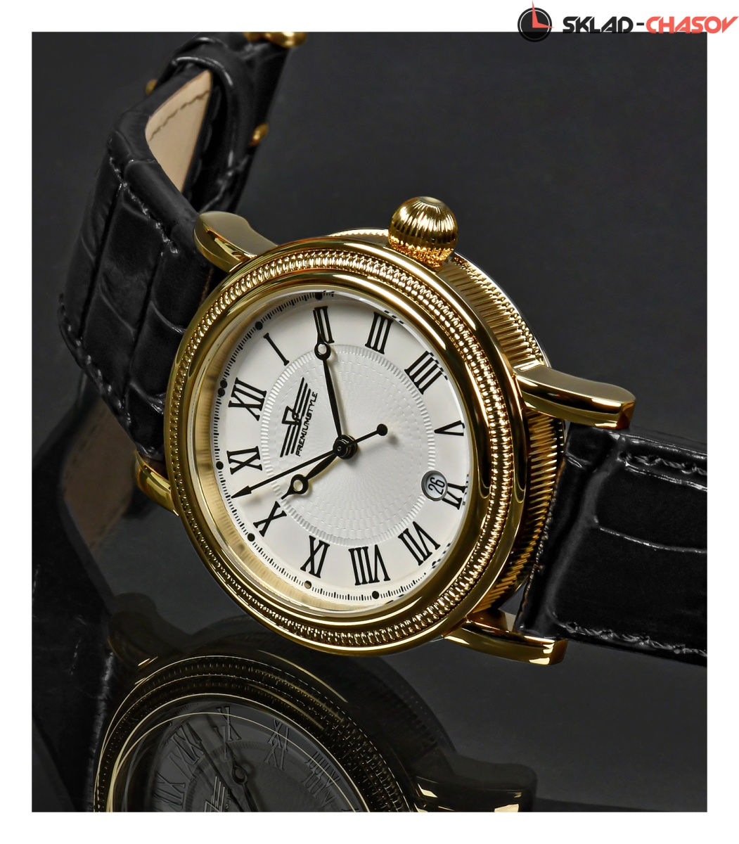 Гильошированный циферблат с полной римской оцифровкой (позолоченные накладные знаки).