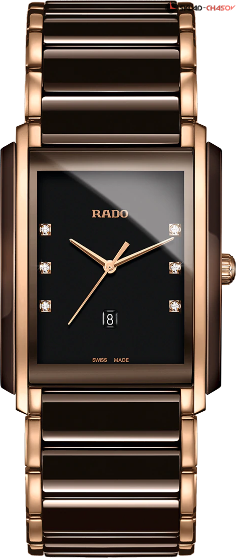 Мужская кварцевая модель, индикация времени центральными стрелками, апертура даты в районе 6 часов, 6 бриллиантов на циферблате общим весом 0,048 ct