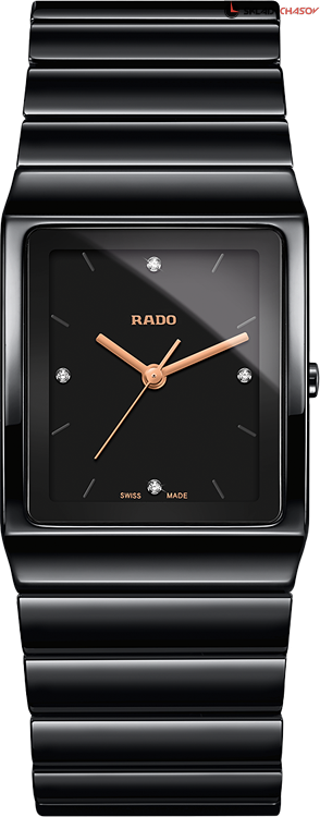 Монолитный керамический корпус, циферблат украшен 4 бриллиантами общим весом 0,026ct