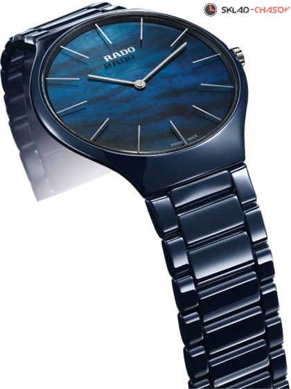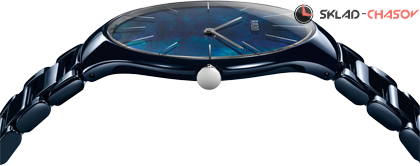 Инновационная модель в тонком керамическом корпусе, сочетающая красоту природы и революционные материалы. Циферблат выполнен из натурального перламутра, с рисунком напоминающим приливы и отливы воды.