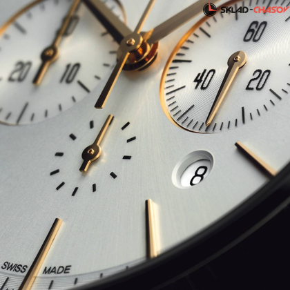 Классический механический хронограф, 30-минутный счетчик на 9 часов и 60-секундный на 3 часа, малая секунда на 6 часов.