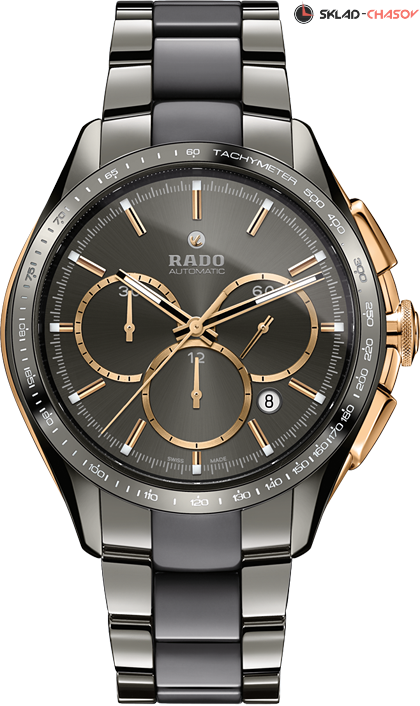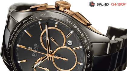 Классический механический хронограф, 30-минутный счетчик на 9 часов и 60-секундный на 3 часа, 12-часовой счетчик на 6 часов. Корпус и браслет выполнены из высокотехнологичной плазменной керамики - Ceramos