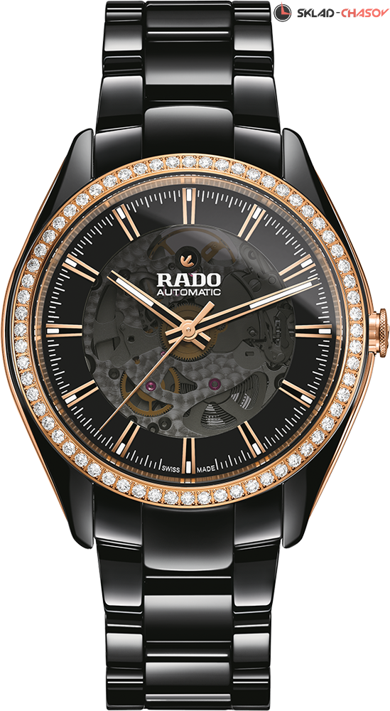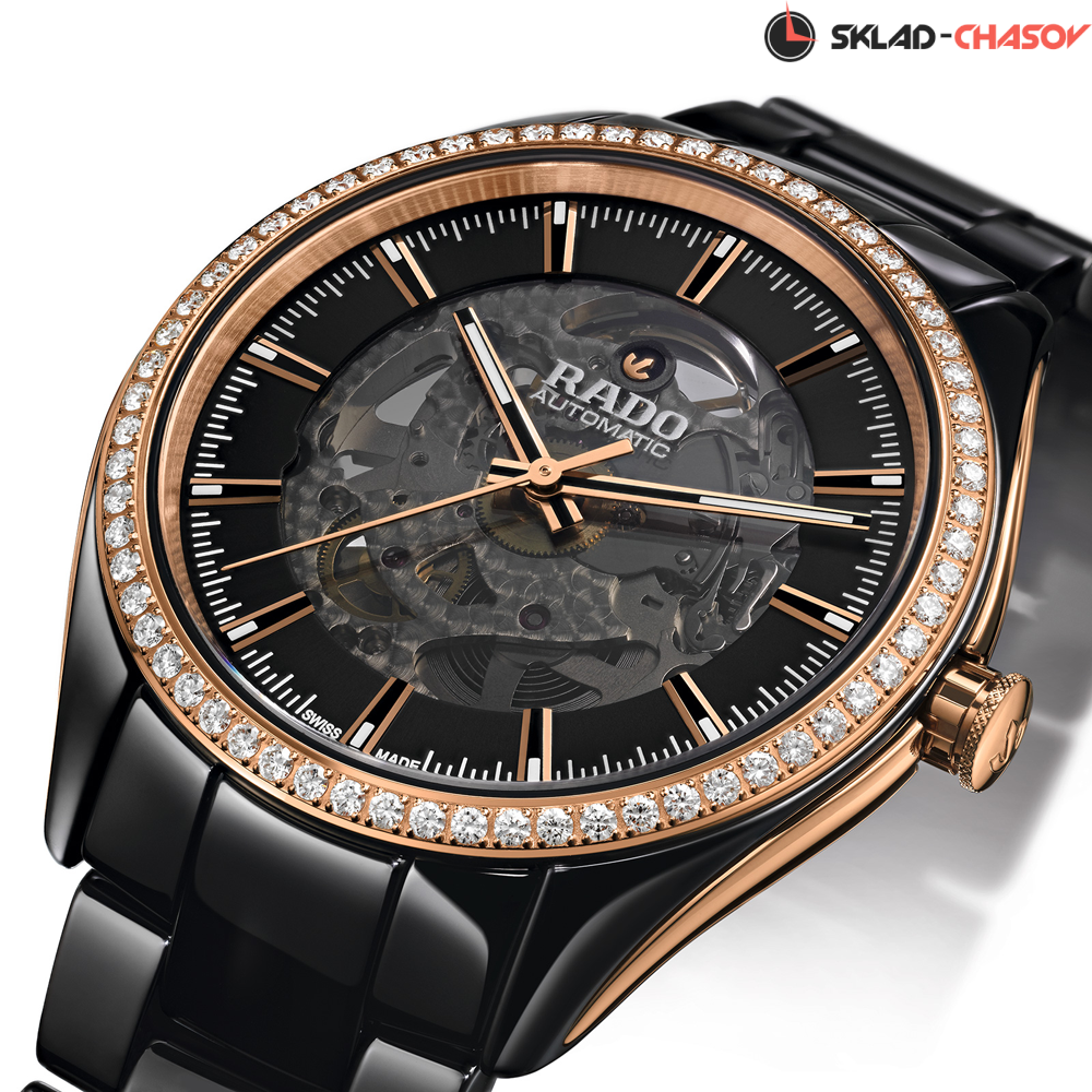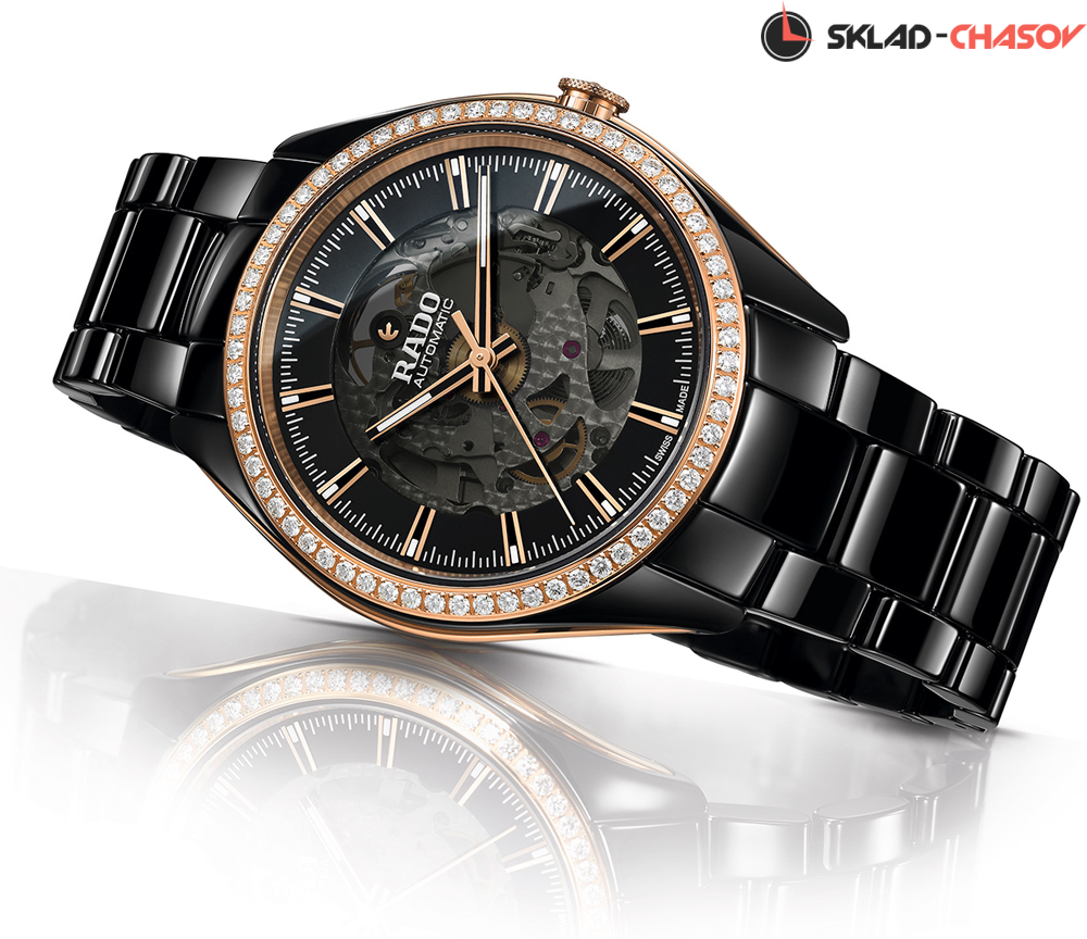 Идеальное сочетание высоких технологий и часового искусства. Сквозь сапфировое стекло на скелетонированном циферблате можно наблюдать за работой механизма. Безель украшен бриллиантами. Прозрачная задняя крышка.