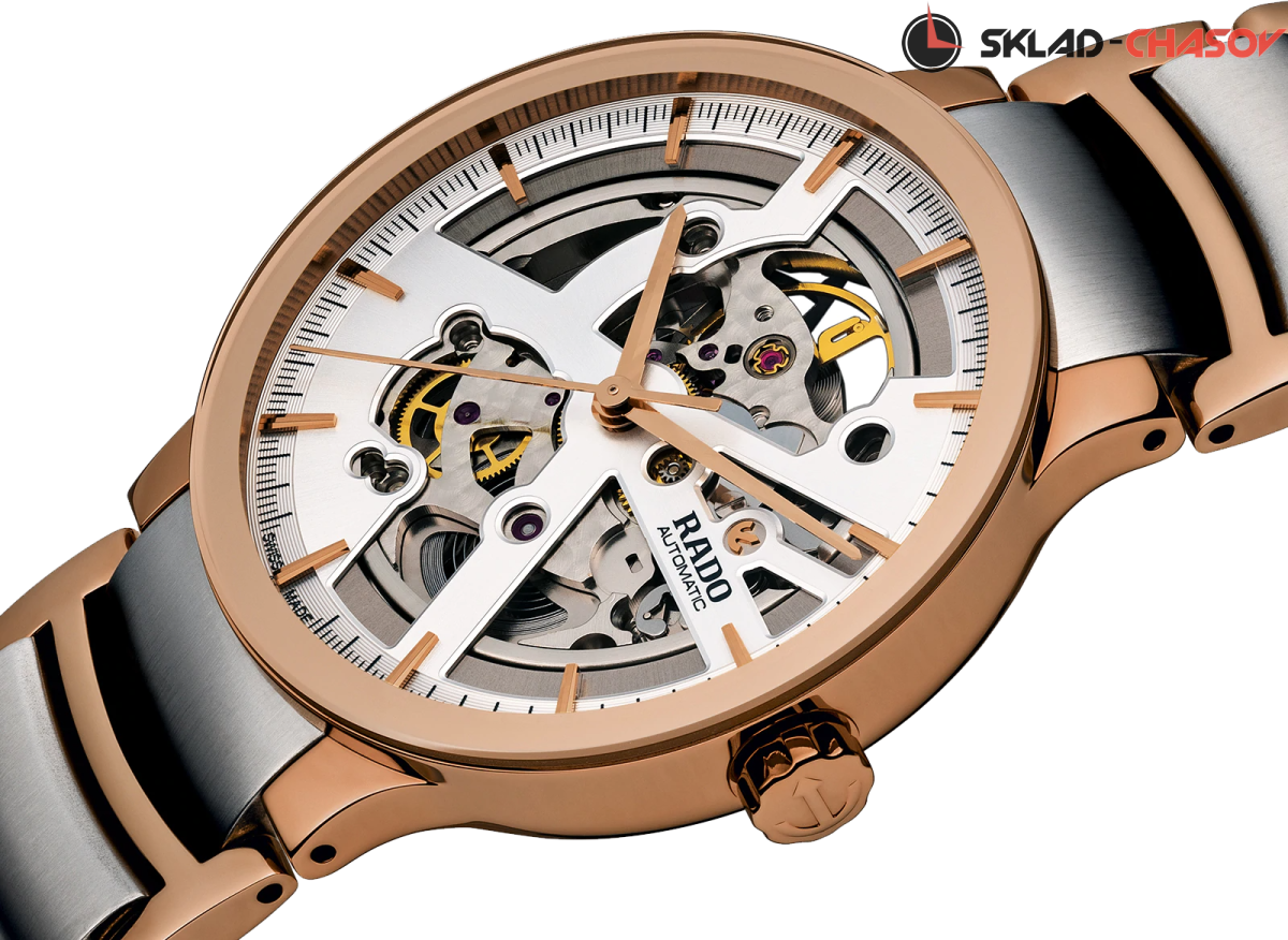 Мужская модель, индикация часов, минут и секунд центральными стрелками, скелетонированный циферблат