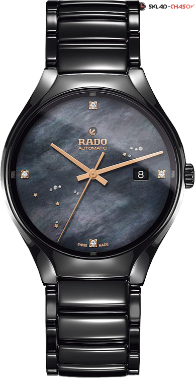 Мужская модель, индикация часов, минут и секунд центральными стрелками. Циферблат украшен 14 бриллиантами.