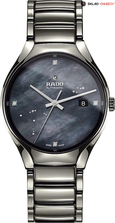 Мужская модель, индикация часов, минут и секунд центральными стрелками. Циферблат украшен 14 бриллиантами.