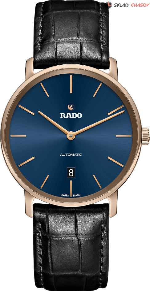 Мужская механическая модель с автоподзаводом, индикация часов и минут центральными стрелками, окошко даты в положении 6 часов.