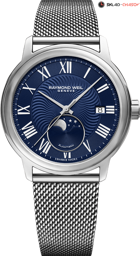 Мужские классические часы в элегантном и изысканном дизайне. Циферблат украшает узор гильоше. Апертура даты в положении 3 часа. Индикация фазы луны в положении 6 часов.