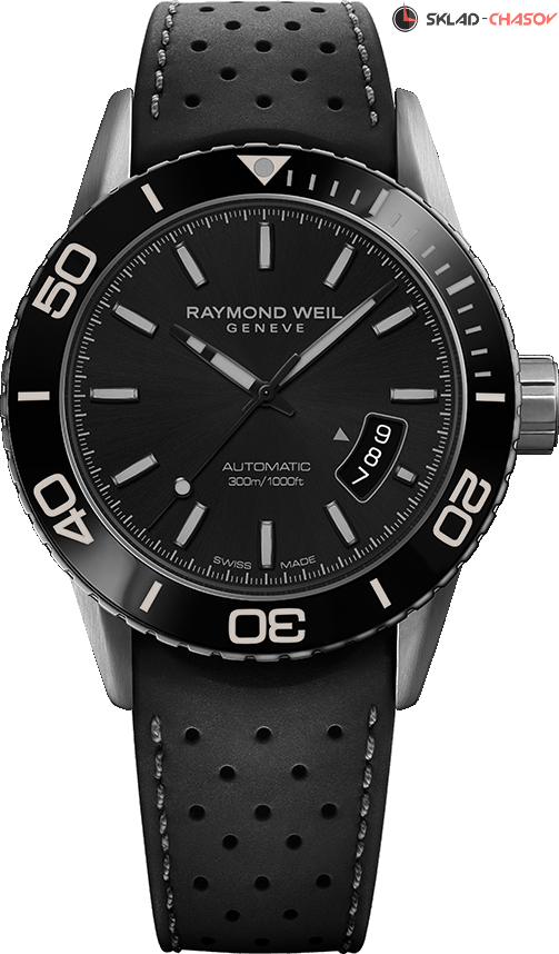 Мужские часы в дайверском стиле. Безель с минутной шкалой однонаправленного вращения. Люминесцентное покрытие на стрелках и разметке. Апертура даты в положении 4 часа.