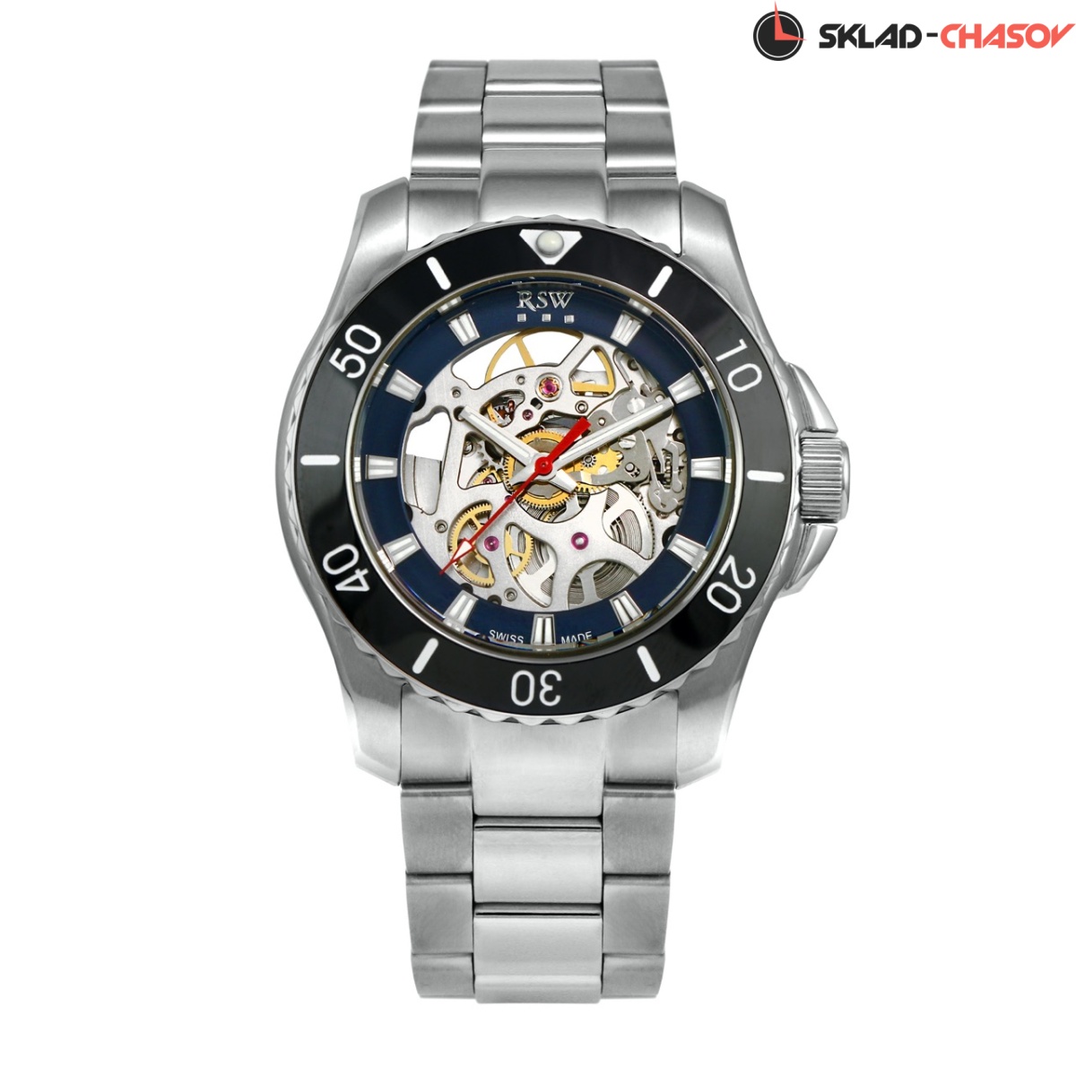 Автоматические Мужские часы RSW, коллекция Hunter (RSWA132SK-SS-9), производство ШВЕЙЦАРИЯ, диаметр - 40 мм, материал корпуса - Сталь, Браслет, материал браслета - Сталь, циферблат - Синий, Метки