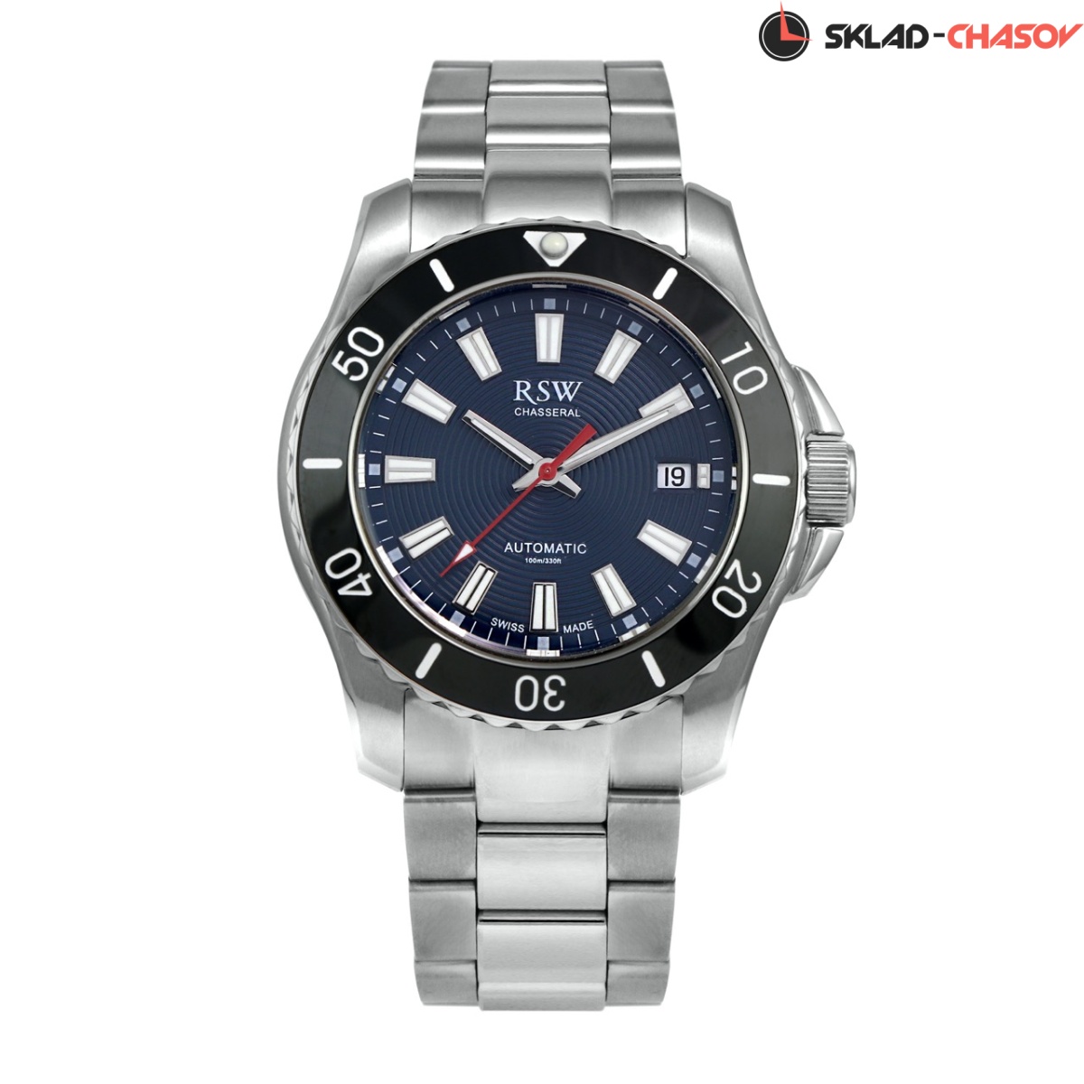 Автоматические Мужские часы RSW, коллекция Hunter (RSWA133-SS-9), производство ШВЕЙЦАРИЯ, диаметр - 40 мм, материал корпуса - Сталь, Браслет, материал браслета - Сталь, циферблат - Синий, Метки, Дата