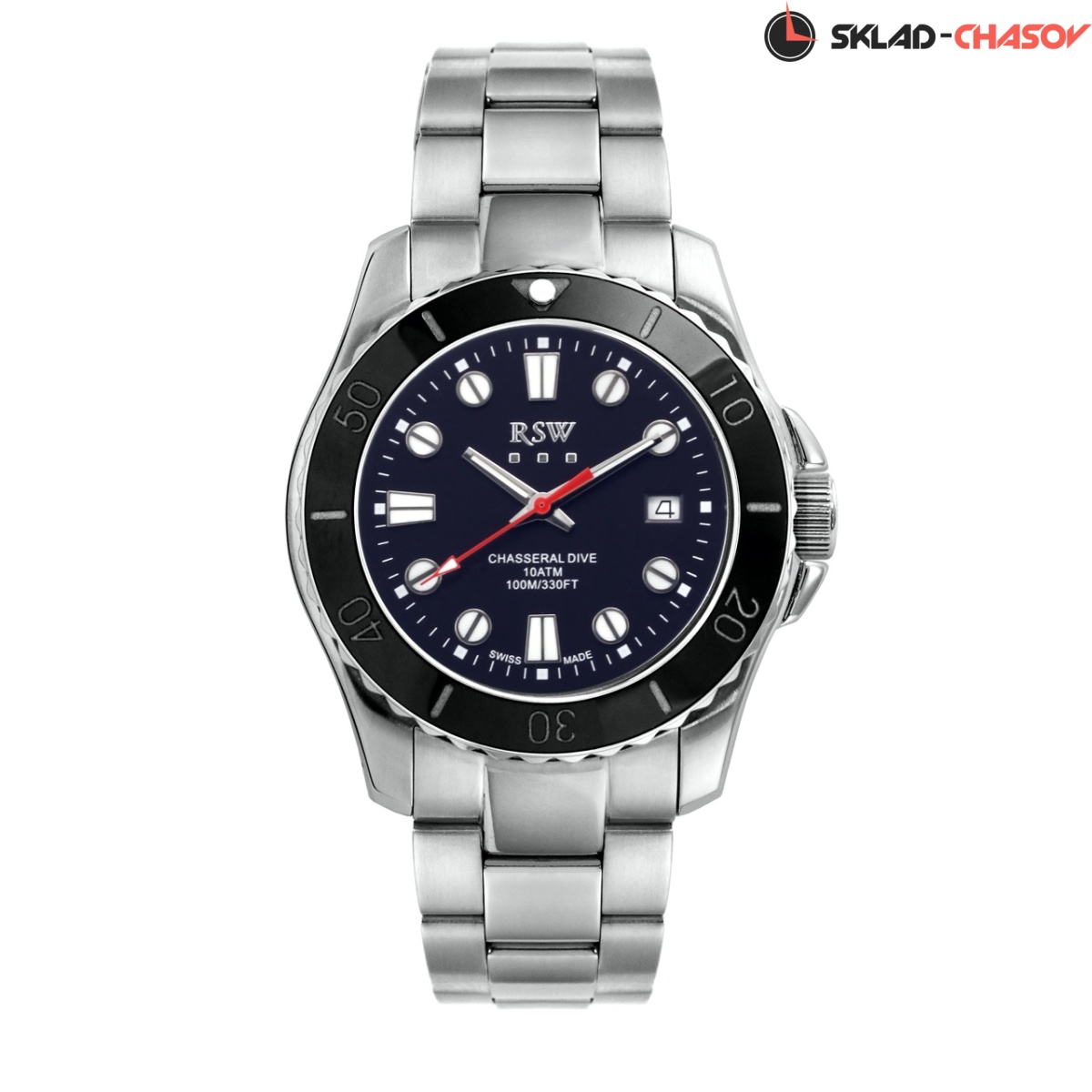 Кварцевые Мужские часы RSW, коллекция Hunter (RSWM137-SS-9), производство ШВЕЙЦАРИЯ, диаметр - 40 мм, материал корпуса - Сталь, Браслет, материал браслета - Сталь, циферблат - Синий, Метки, Дата