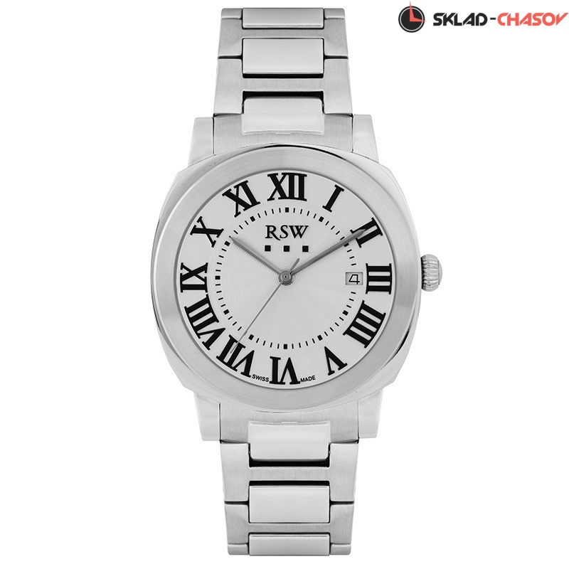 Кварцевые Мужские часы RSW, коллекция Romeo (RSWM118-SS-1), производство ШВЕЙЦАРИЯ, диаметр - 43 мм, материал корпуса - Сталь, Браслет, материал браслета - Сталь, циферблат - Белый, Метки, Дата